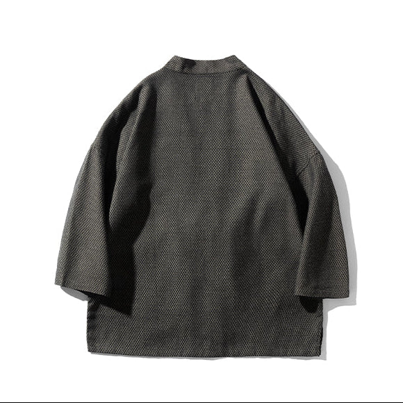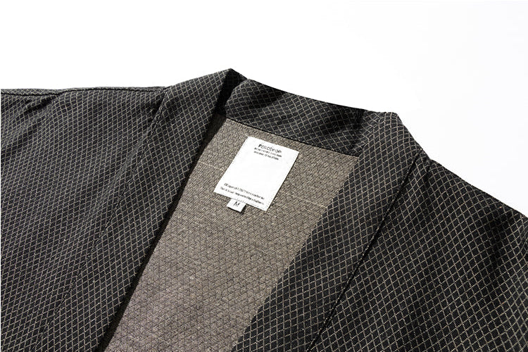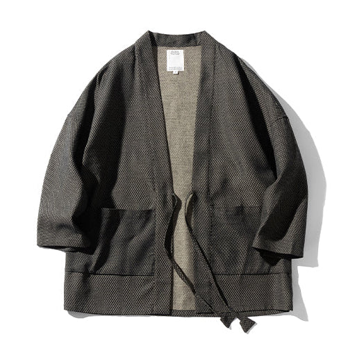 This Kimono jacket features a captivating small diamond pattern reminiscent of dragon scales intricately braided from uncountable threads. Tailored to be thin and lightweight, this jacket is perfect for spring or autumn.